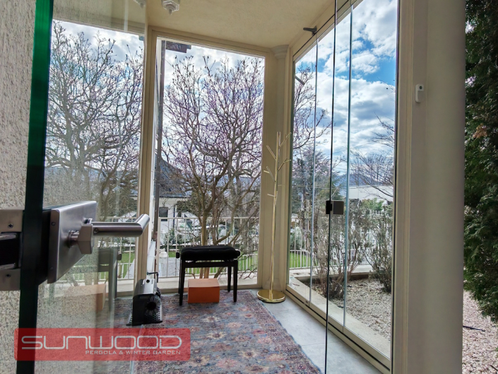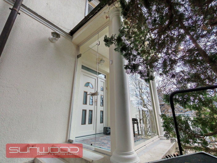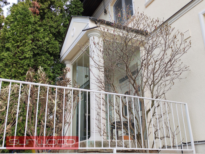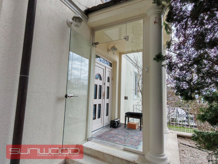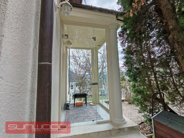 Gyakran a legegyszerűbb megoldások a leglátványosabbak. Ennél a projektünknél egy bejárati ajtót varázsoltunk időjárásállóvá, megőrizve a ház eredeti karakterét. A klasszikus oszlopok közé integrált modern, nyitható és eltolható üvegfalaink egy diszkrét szélfogót alkotnak, amely: